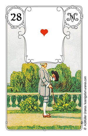 ![]() | Herr Nr. 28 (Personenkarte) Fragesteller, Hauptperson, Mann, Ehemann, Herzensmann, Männliche Person, Lebenspartner, Freund, Partner Zeitkarte intuitiv: Dieser Karte wird keine Zeit zugeordnet Zeitkarte traditionell: 28 Tage / 28 Wochen / 28 Monate 5 Beispiele von Kombinationen: Herr und Lilie: Attraktiver Mann Herr und Reiter/ Kavalier: sportliche Erscheinung, sportlicher Mann Herr und Bär: Dominant, selbstbewusst, selbständig Herr und Hund: Ehrlicher und treuer Mann Herr und Mäuse: eifersüchtiger Mann |